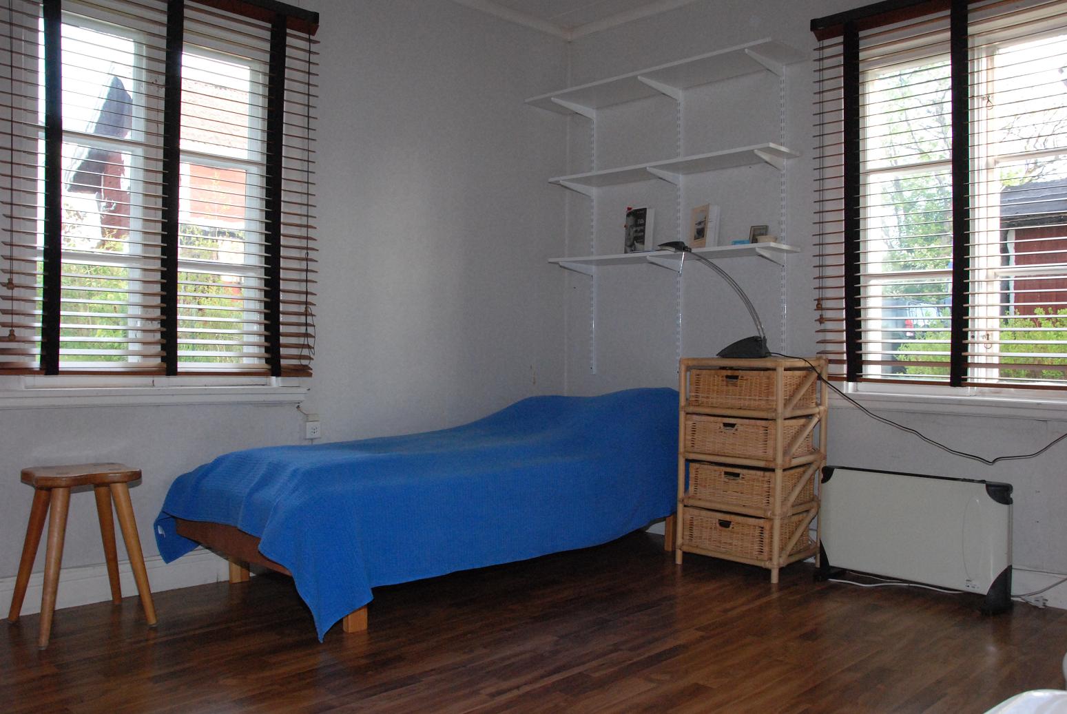 Innanför köket ligger det ena sovrummet och det har två sängplatser.